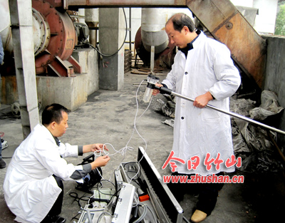 今日竹山网消息 今年来,县环境保护监测站积极开展争创“业务能手”活动,充分发挥监测职能,每年向市以上报告2000多条监测数据,无一差错。在今年全市监测业务“大比武”活动中,荣获集体二等奖。图为技术人员对县重点企业—秦巴钡盐有限责任公司生产车间排放气体进行监测的情景。