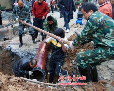 今年初以来,县自来水公司把解决城区乡镇居民和企业饮用安全水,作为机关效能力建设的重中之重,投资近600万元,对城区取水头部进行临时技改,邀请中国市政中南设计研究总院对城区永久性取水方案进行勘测设计,对西关街、后街、辕门街始建于60年代的铸铁管道进行了更新改造;同时延伸了莲花、邓坪工业园区和南门等处廉租房主管网铺设;对宝丰镇直管网进行了更新改造,对宝丰北大街、沿河大道管网进行了延伸,对上庸镇取水管网进行了更新。十堰路改造工程启动之后,10月1日,县自来水公司集中人财物,战睛天斗雨天,实行三班倒,日夜加班加点,将十堰路至北大街始建于80年代初的铸铁管道全部进行了更新改造,确保居民饮上了安全水。(党世根 程涛)