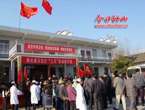 今日竹山网消息 3月28日,阳光灿烂,宝丰镇喻家塔村委会院里,写着“湖北省卫生厅‘三万’活动医疗队”的横幅和太和医院的院旗在阳光的照射下格外醒目。“这么好的专家来村里看病,太感谢省卫生厅‘三万’活动工作组的同志啦。”来到村委会的村民中不时传出感谢的话……