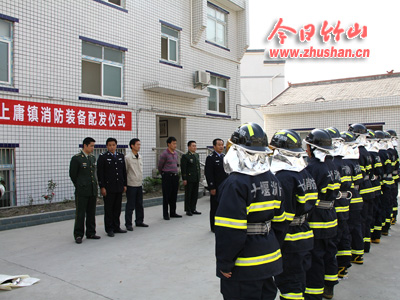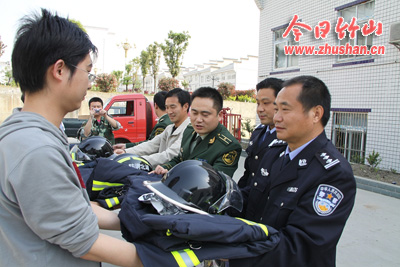 今日竹山网消息 4月19日,上庸镇10名专职消防队员从县公安局消防大队领导手中接过崭新的09式消防服,至此,这支乡村消防队,也有了专业的装备。