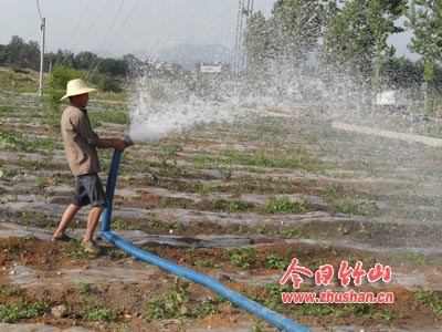 去冬以来,持续干旱,导致九里岗沿线千亩茶园旱情严重,当地干部群众组织十余台抗旱机械,充分利用茶园现有水渠网络,抽水抗旱,使千亩茶园旱情有所缓解。(王义富 陈美金)