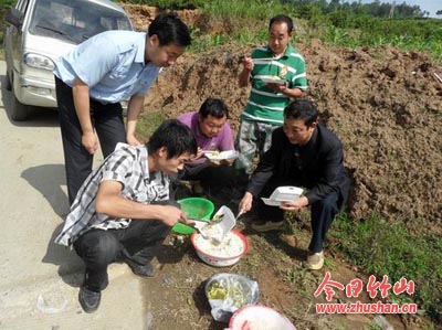 5月30日中午,县委副书记、县长佘立柱亲临宝丰,对水厂供水问题进行一线指挥,要求县水务部门外购大功率、高扬程水泵。副县长陈伦富一线调度,宝丰政府领导倾尽全力协调,于31日下午外购水泵安装到位,31日晚7点水泵调试成功。同时,31日下午4点,宝丰镇党委书记徐刚、镇长肖海带领从镇政府、派出所、交警队、财政所、水厂、水管处等单位抽调的50名干部,分昼夜两班,驻守在15公里的供水渠网线路上,吃住在护水一线,坚持24小时护水,以确保谭家河水库死水位以下的水源全部用于水厂供水。