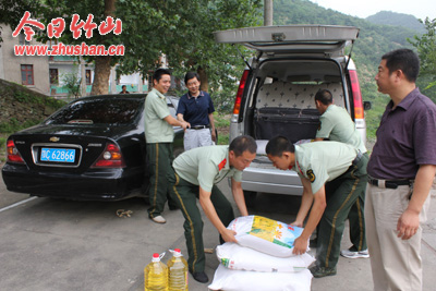 今日竹山网消息 为继承和发扬我军拥政爱民的光荣传统,进一步落实拥政爱民活动,促进和谐警民关系的建设,牢固树立部队亲民爱民的良好形象。7月28日下午,县消防大队武警官兵一行五人在何军指导员的带领下来到县社会福利院土塘院区,看望生活在那里的孤寡老人,并给他们送去米面、食用油、水果等生活用品,用真情演绎了一幕军民鱼水情深的感人画卷。