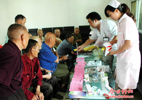 今日竹山网消息 8月3日,大庙乡组织卫生院医护人员来到中心福利院,为孤寡老人免费看病送药。乡党委书记、乡长陈松介绍,该乡每月都要组织一次医护人员进福利院活动,做到院民生病有人管,用药全免费,让孤寡老人真正享受到政策的温暖。(袁平凡 章海波 摄)