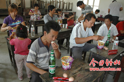 在宝丰镇喻架塔、曹家湾村移民集中安置点,镇村移民干部准备好大碗面、火腿肠、矿泉水、啤酒、鸡蛋、开水,尽量让移民朋友吃饱,不挨饿,保障了当日移民正常生活,并积极搞好对接,妥善地将移民安置到过渡房里。