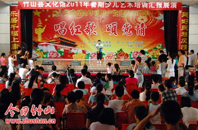 今日竹山网消息 8月11日上午,暑期在县文化馆接受艺术培训的150多名小学员,在县宣传文化中心进行汇报演出,分别展示了他们在舞蹈、绘画、书法、器乐等方面的学习成果。据了解,县文化馆暑期开办了多个培训班共招收学员150多名,较往年有大幅增长,受到家长们的欢迎。(陈剑 江华)