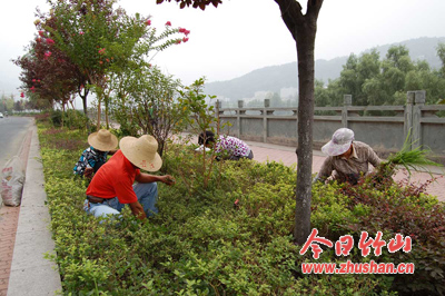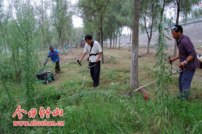 今日竹山网消息 堵河青年林、纵横大道绿化带除草,修复路沿石、人行道彩砖……这是8月13日记者在县城区看到的县园林、市政管理所给力“楚天杯”创建的情景。