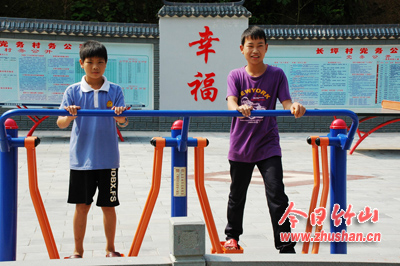 今日竹山网消息 8月28日,两名学生在文峰乡长坪村文体广场娱乐。文峰乡在城镇带城乡一体化建设中,先后投入300万元对长坪新型集镇进行了改扩建,现已基本竣工,扮靓了竹山“东大门”。(袁平凡 许忠)