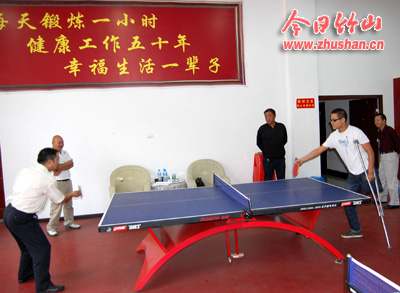 今日竹山网消息 9月8日,县残联组织残疾人运动员们,在县体育中心进行乒乓球、田径项目集训。7月初以来,县残联认真组织,精心准备,对报名参赛的67名残疾人运动员进行筛选、训练、选拔,确定了10名残疾人运动员参加肢体残疾组、听力残疾组乒乓球、田径21个项目的比赛。城关镇东门社区参赛的肢体残疾运动员熊景山满怀信心地说:“我在市二运会上获得了乒乓球亚军,今年我争取在个人乒乓球赛中取得好成绩。”(党世根 罗明武摄)