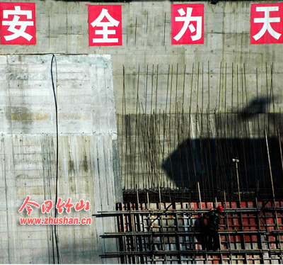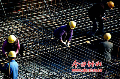 杨师傅是名钢筋工,他一边加工钢筋构件,一边告诉记者,“十一”期间,他们没有放一天假,所有工人和工程管理者都奉献在重点工程项目建设上。“我们必须赶时间,确保明年3月份首台机组开始发电。”