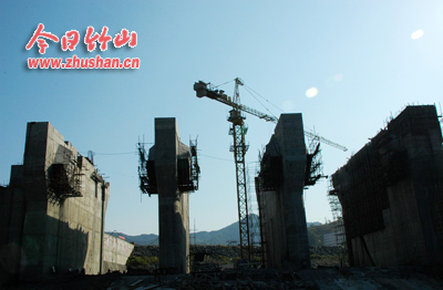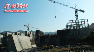 在潘口水电站建设工地,建设者们也都战斗在工程一线,发电机厂房里,1号机组正在安装转子,2号机组正在备仓浇筑。1号发电机厂房主体工程基本完工,2号发电机厂房正在铺设第三层楼的钢筋,准备进行水泥浇筑。“按照预定计划,1号机组有望12月底发电。”机电部工程师介绍。(袁平凡)
