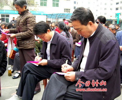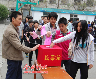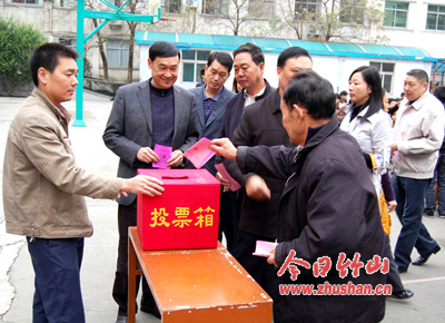 今日竹山网消息 10月30是县乡人大代表选举之日,城关镇大街选区县、乡人大代表选举在县职业技术集团学校举行,县政协主席刘声齐与众多选民一道参加了投票选举。
