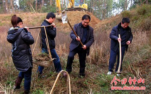 今日竹山网消息 12月底,溢水镇腰店村王家塘挖机轰鸣,一片热火朝天的劳动场景。村民们与县地震局水利“三万”工作组成员们一起,在塘里劳作,全面开展水利基础设施建设。县地震局向腰店村捐赠10000元疏挖沟渠专项资金,并走访慰问了江大菊、周文章、秦远荣等五户困难群众为他们送上新春祝福并为他们送上慰问金。(方琨 东方)
