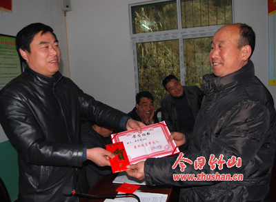 今日竹山网消息 2月23日,城关镇高家庄村党支部书记黄治斌等3名村干部,把镇政府奖励的1.5万元突出贡献奖捐献给村上,作为全民创业奖励基金,发给老百姓,被十里八村的群众传为美谈。