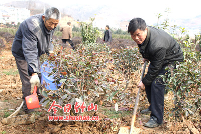 今日竹山网消息 2月21日,溢水镇东川股份制苗圃基地工人正在移栽塔柏、楠树等苗木。去年下半年,溢水镇何兵、刘煌元等7名育苗能手合伙投资160多万元,租赁该镇东川40亩土地,大力栽培楠竹、紫薇、紫荆、香樟、塔柏、楠树等经济苗木,建立了竹山县第一家股份制育苗示范基地,吸引了大批群众来参观和购苗。据悉,近两年,我县采取转包、出租、互换、转让等方式,积极引导土地在农户之间流转达5.74万亩,产生了较大的造林经济效益,完成植树造林130万株,林业育苗800亩。(陈昌荣)