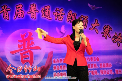 今日竹山网消息 11月26日晚,县广电局演播大厅内掌声雷动、气氛热烈,参加“移动杯”竹山县首届普通话朗诵大赛决赛的选手们正在此激烈角逐。县领导欧阳立、王凌云、方孝春观看了比赛。