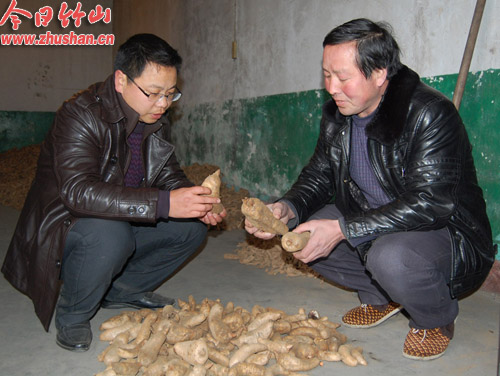 曹林(右)察看新收购的鲜天麻