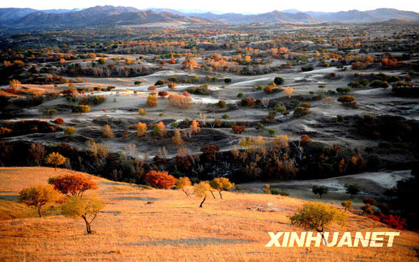 京津周边沙源治理工程项目区——内蒙古赤峰市浑善达克沙地疏林广布、秋意盎然(2008年10月6日摄)。