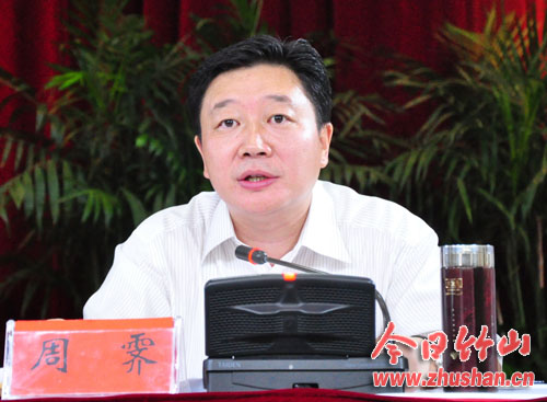 市委书记、市长周霁介绍“十星级”文明创建历程。