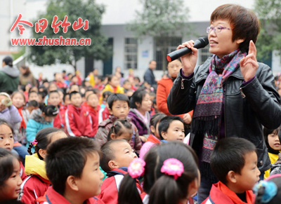 县12O医疗急救指挥中心副主任邵久红为学生讲急救知识