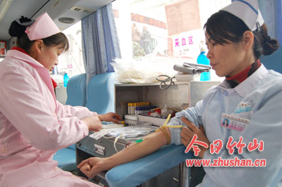 今日竹山网消息 2月1日,十堰血站竹山分站的采血车开进县人民医院,该院百十名医务人员利用工作间隙踊跃无偿献血,以此来迎接春节。据介绍,春节期间是各种事故多发期,用血量大,为确保春节期间医疗临床用血,县人民医院号召该院医务人员踊跃参加无偿献血,弘扬人间大爱。仅当日,该院就有51名医务人员爱心献血,献血量达15000ml。(王斌 左治平 贾金罡)