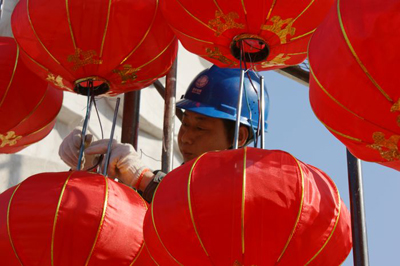 今日竹山网消息 2月23日,国际绿松石城洋溢着浓厚的元宵节庆气氛,工作人员正在紧张布置元宵晚会现场,大红灯笼把舞台周围妆扮得分外靓丽。为让市民过上一个喜庆祥和、雅俗共赏的元宵佳节,我县将举办2013年元宵灯会。晚会于正月十五日晚7点开始,届时,由县宣传文化中心主打、县医院和社区联袂参演的歌舞、彩船、小品、相声等“好戏”也将连台上演。(袁胜敏 张慧)