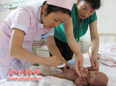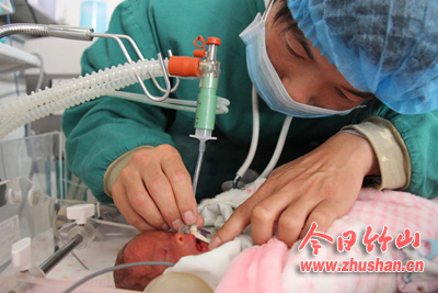 营造近似妈妈子宫的“新家”。患儿只在母亲肚子里待了近7个月时间,他们把培养箱的温度保持在35℃,理论湿度为100%,让她呆在里面,就好像在妈妈肚子里一样。严防感染。患儿皮肤娇嫩,薄如蝉翼,就连一个医用胶布贴上去都可能让其开裂引起感染,医护人员照顾得格外小心。每每接触她,都洗净手,戴手套。打针力求精准,患儿肉嫩皮薄血管细,几乎是承受不起针刺,护士把维护静脉通道通畅视着保护患儿“生命通道”,小心翼翼,基本上做到“一针见血”。营养除了静脉给予外,重要的还是要患儿自己“会吃”,一开始因为胃肠功能不成熟,喂奶不能用奶瓶,护士只能用滴管慢慢往嘴里滴,每次2毫升牛奶要喂半小时。慢慢的给她增加食量,2至3小时喂一次奶,从2毫升/次到现在的80毫升/次。