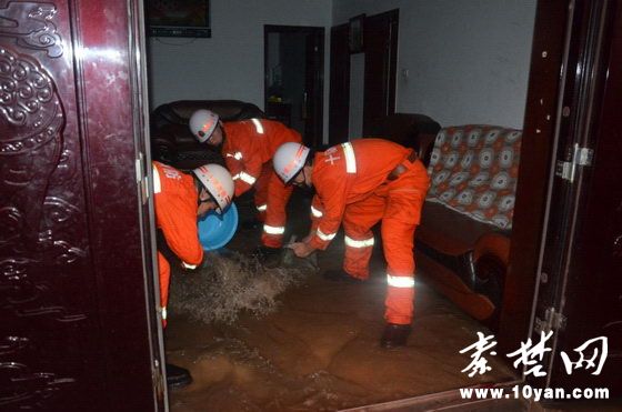 秦楚网讯 记者 闵波 通讯员 徐兵 报道:我们家里都进了水,家具都被泡在了水中,请你们来帮帮我们。23日晚,竹山县突降暴雨,几户居民的房屋进水严重。接到救助电话后,竹山消防大队立即出动12名官兵赶往现场救援。