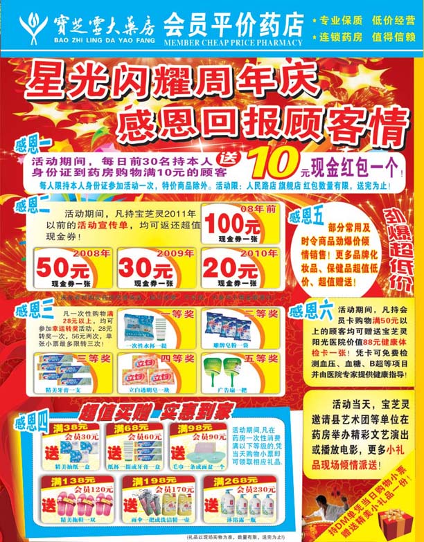 宝芝灵药房十周年店庆优惠酬宾