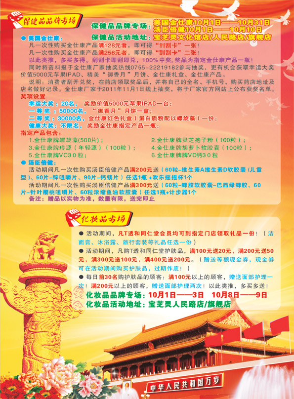 宝芝灵“会员答谢暨优惠酬宾活动”国庆震撼钜献