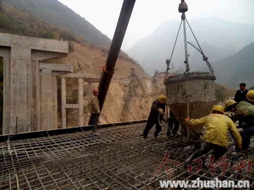 今日竹山网消息 12月25日,笔者在龙背湾交通复建工程鲍双线12标段(柳林乡花坪村)看到,工人们正加紧浇筑潘家沟大桥4#桥台(如图),施工现场热火朝天、井然有序,呈现出一片繁忙地劳动景象。 据了解,潘家沟大桥由广西华南建设集团有限公司中标承建,设计桥长100米,5跨空心板曲线桥,工程造价为1000万元,2012年3月份开工建设。施工中,该施工单位始终克服资金困难,强化管理,确保工程质量安全,奋力推进施工,计划年内完成3跨梁板安装,预计2014年4月底完成全部桥梁建设任务。(程用国)