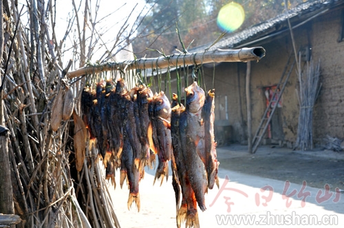 今日竹山网消息 “腊鱼、腊肉、大曲酒等过年货已备齐,再过几天挂上灯笼、贴上春联就过年了。”1月20日,溢水镇花栎村村民程功志家场子边的竹竿上晒了满满一大杆子腊鱼,虽然离农历春节还有近十来天时间,但这里的村民早已开始置办过年货,为过年做足“准备”,家家户户早已散发出马年新春的浓浓年味。(向继华)