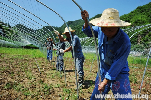 今日竹山网消息 7月3日,文峰乡太河村蔬菜大棚建设紧张施工。今年,该乡抢抓生态无公害绿色蔬菜建设项目,创新发展模式,对土质肥沃、平整度好、非常适宜发展特色种植产业的太河村,采取土地流转的方式,盘活优质土地资源500亩,并整合当地富余劳动力,大力发展无公害蔬菜种植,新建大棚350多个。据测算,建成大棚蔬菜基地后,每亩地由过去约2000元收入增至8000元,大棚蔬菜基地全年总收入达到400万元,经济效益大大提升。(袁平凡 许忠)