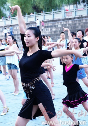 今日竹山网消息 7月22日,蒂恩艺术学校的学员来到堵河文化广场上排练拉丁舞。 入夏以来,我县群众文化活动愈加火热,堵河文化广场进入“舞”时代,交谊舞、广场舞等各类舞蹈争芳斗彩,蔚为壮观。(袁斌 袁胜敏)