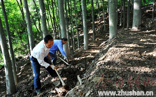 今日竹山网消息 9月4日,国有竹山县九华山林场林场职工全照学正带领施工队忙着搭建钢管温室大棚和平整林下苗床,为早日让新引进的林下药材福建金线莲在九华山林场安家落户做准备。