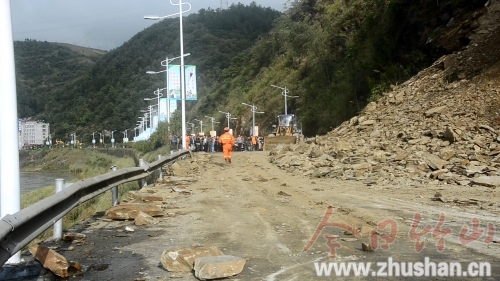 今日竹山网消息 9月29日,县消防大队接到报警称:位于潘口乡老水厂附近路旁山体滑坡,路面积满了碎石,情况十分危急。接到报警后,大队迅速出动7名官兵1辆消防车赶赴现场处置,大队全勤指挥部随警出动。