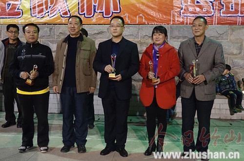 今日竹山网消息 11月10日晚,经过一周紧张有序的角逐,我县“金秋杯”篮球赛在县文体中心胜利闭幕。 在闭幕式上,本次比赛裁判长宣布了比赛成绩。县教育局、水务局、检察院分获甲级队前三名;县公安局、财政局、宣传部获得乙级队前三名;堵河文化、人社局获得“体育道德风尚奖”运动队;农业局、上庸镇获得“最佳组织奖”运动队;潘世荣、乐文获得“最佳领队”;刘绍智获得“最佳教练”; 龚正万、董武等获得“优秀运动员”荣誉称号。(高学峰 袁胜敏)