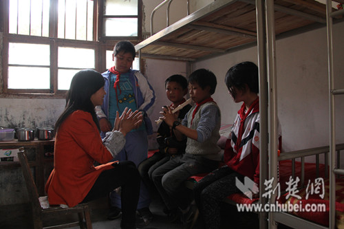 湖北罗田希望小学在老师的指导下练习乐器