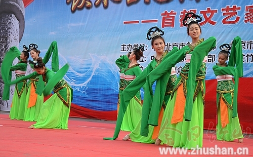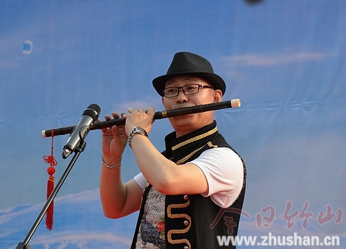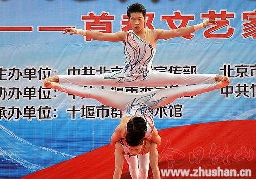 喜连天来笑连天,竹山来了艺术团;吹拉弹唱舞蹁跹,杂枝魔术真开眼;京竹同饮堵河水,情同手足向明天!