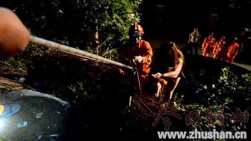 今日竹山网消息 7月22日22时,县消防中队接到报警称:位于城关镇桥东村木材厂附近有一辆轿车翻入了半山腰,司机被困车内,请求救援。中队迅速出动2辆消防车12名官兵赶赴现场处置。大队全勤指挥部遂警出动。