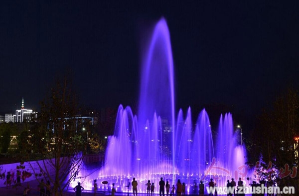 今日竹山网消息 9月6日晚7时,闻讯而来的市民早早集聚在秦巴文化艺术中心(圣源广场)音乐喷泉的看台上,期待一睹喷泉的芳容。随着音乐的响起,各种单体水形相互组合,伴随着《十星歌》的旋律和灯光的配合,变幻出各种形态,特别是当喷射高度达10余米的主喷泉如擎天玉柱冲向夜空时,七彩的射灯在四周配合摇曳,把夜空妆点得绚丽多姿,围观的市民赞叹不已。