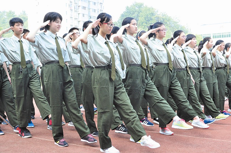 8月24日上午,十堰一中阳光班学生正在进行军训。