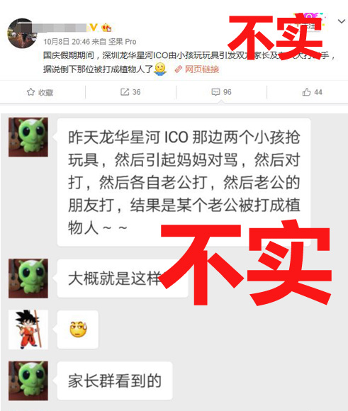 9日0时6分,深圳市公安局官微在这条通报下留言提醒网民:家长们在处理小孩子之间轻微矛盾时一定要理性对待、保持克制,网传有家长被打成“植物人”情况不实,请朋友们别传播不实信息,该案件在进一步调查中。