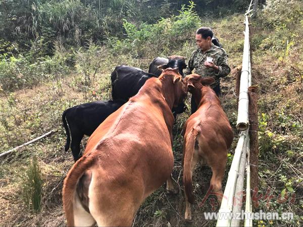 今日竹山网消息 “哞——”10月30日上午,麻家渡镇鸡公梁村2组金帮林朝门前山梁一声呼唤,他喂养的6头牛便一路欢叫着下山,亲昵地簇拥在他身边,舔食着他手中的盐。依托得天独厚的山场资源优势,在县新闻办驻村工作队的引导帮扶下,该村贫困户“靠山吃山”积极发展养殖业。全村2017年建档立卡贫困户已有38户吃上生态养殖饭,目前存栏猪69头、牛32头、羊39只、鸡405只、蜜蜂3箱。(操儒舜 摄)
