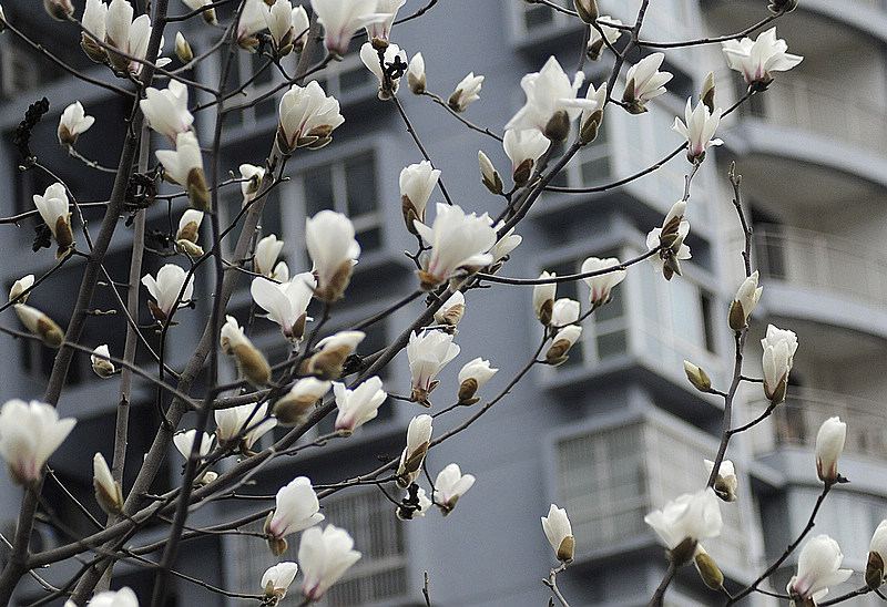 3月5日,春雨过后,城关北大街院落花开,喜报新春。相机拍之,分享赏之。(摄影:方圆)