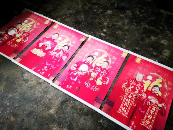 金德新夫妻唯一的照片是结婚照上的合影,换上喜庆的中式礼服,有点拘谨,但更多的是幸福。拍完照片,金德新情不自禁向现场所有人竖起来大拇指:“扶贫干部真好!”