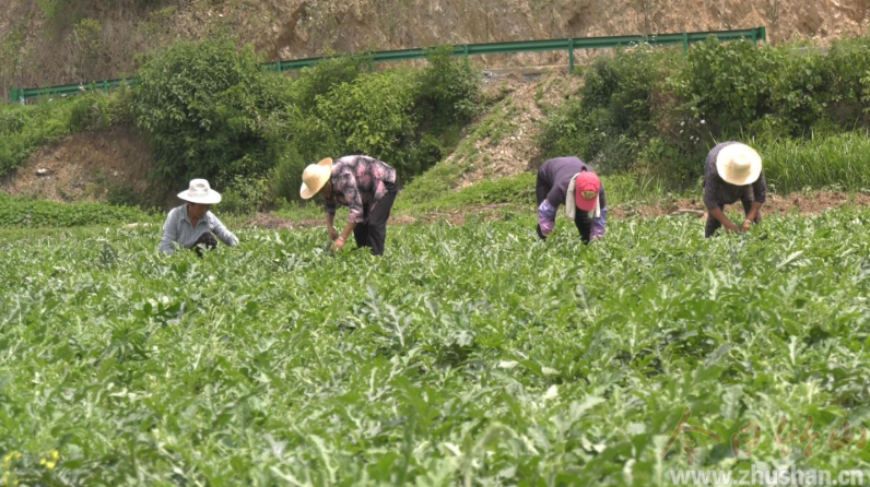 从不理解到积极支持,如今,在龙贵蔬菜合作社的瓜田里,瓜农们正在合作社的统一安排下,在瓜田里打着岔,每人每天可获得一百元的收入。