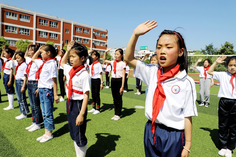 今日竹山消息 “没有共产党就没有新中国,共产党、辛劳为民族,共产党他一心救中国······”6月26日上午,麻家渡镇九年制学校同学们高声唱响《没有共产党就没有新中国》拉开了“竹山县2019童心向党歌咏活动”的序幕,以歌咏赛、网络赛歌、微信小视频等形式传唱红色歌曲和优秀童谣,培育了广大未成年人心向党、跟党走的高尚情感和远大志向。