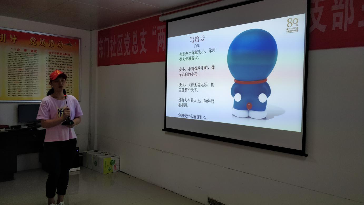 据悉,今年以来,为响应竹山县创建全国文明县城和提升新时代文明实践工作的业务水平,东门社区已多次举办了此类活动及讲座。在本次活动中,志愿者用PPT向学生们讲解诗词,带领朗诵诗词,将诗词编译成歌曲,帮助同学们学习、记忆。学生们积极响应,参与互动,十分活泼。讲座中,志愿者讲解如何分类垃圾及垃圾分类的意义,并用现场找到的材料让学生们辨别分类。课堂生动有趣,受到同学们的喜爱与欢迎。