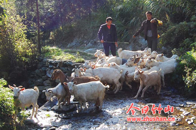 今日竹山网消息 楼台乡安坪村靠近沧浪山,山场面积很大,群众大多靠山吃山,该村五组村民田万金就是依靠这里荒山草坡宽广,空气新鲜,适宜养殖山羊来摆脱贫困的。